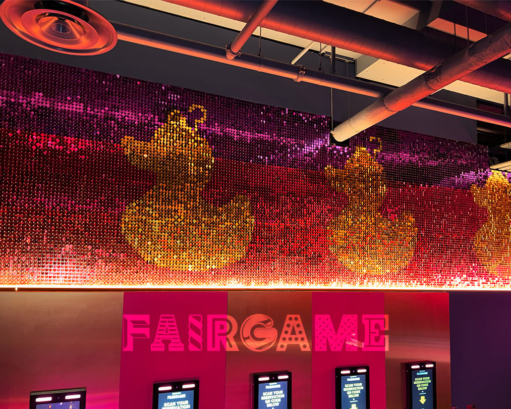Fairgame brings a burst of energy to the City of London with an entrance that captivates from the very threshold. Spanning 12 metres wide and 2 metres high, this bespoke Shimmerwalls sequin installation converts the arrival space into an instant brand statement—playful, confident, and unmistakably Fairgame.